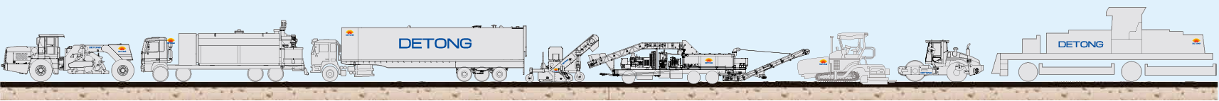 ● 銑刨(碎石)-拌合-攤鋪-碾壓,連續(xù)式流水作業(yè),再生施工效率高,開放交通快